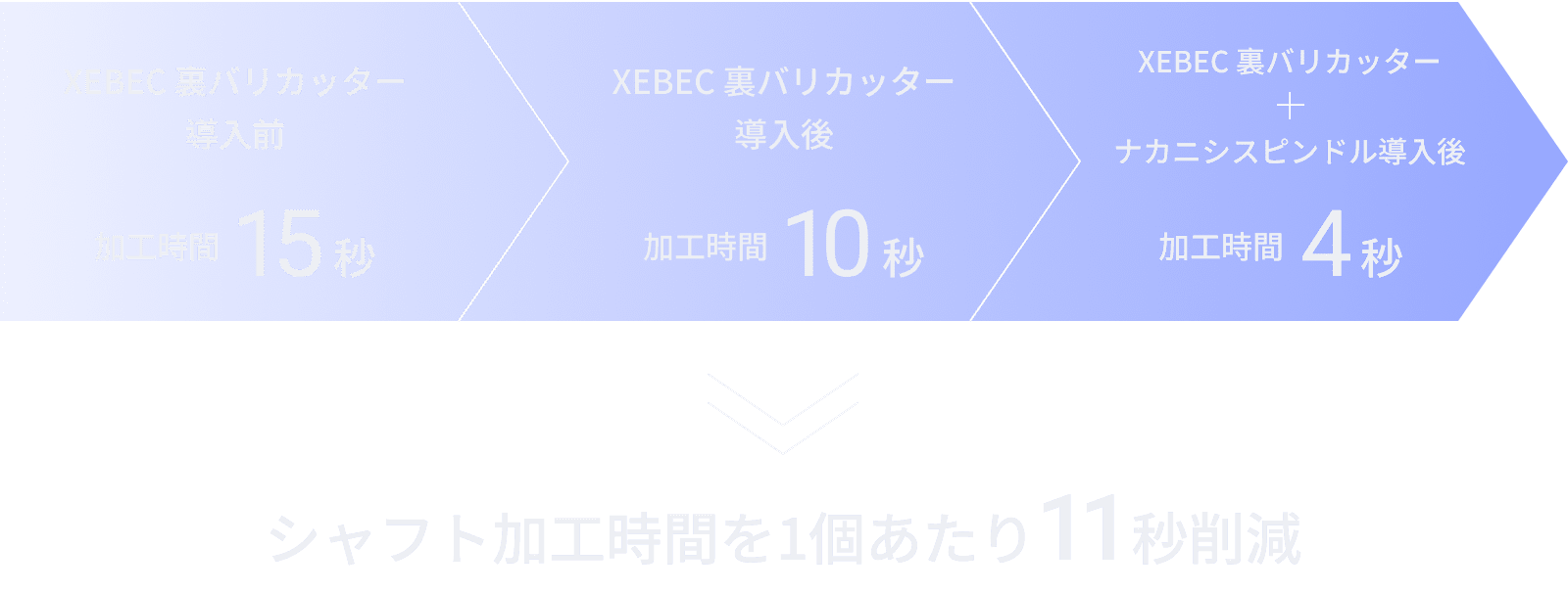 従来条件(機械主軸)との比較では高速回転により送り速度を2倍以上とし、加工時間50%削減を実現。